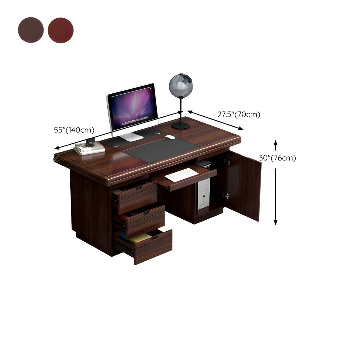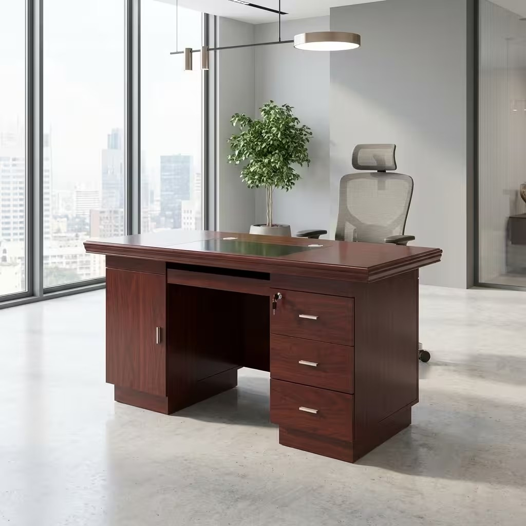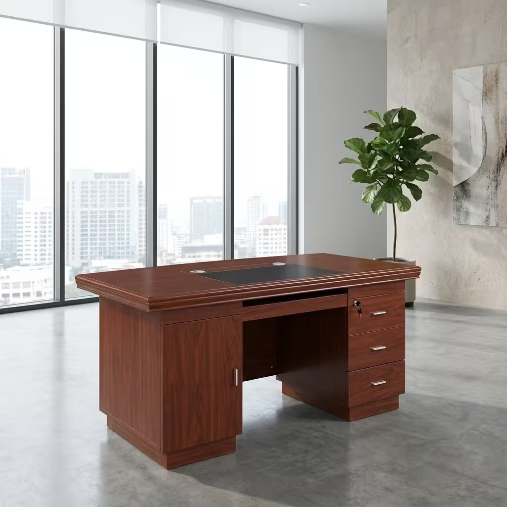 Crafted from high-quality mahogany wood, this desk features a rich, polished finish that adds a touch of sophistication to any workspace. Its 1.4-meter size provides ample working space for laptops, documents, and office accessories while maintaining a space-saving design. The smooth tabletop surface enhances productivity by offering a clean and organized area for daily tasks, meetings, and planning.