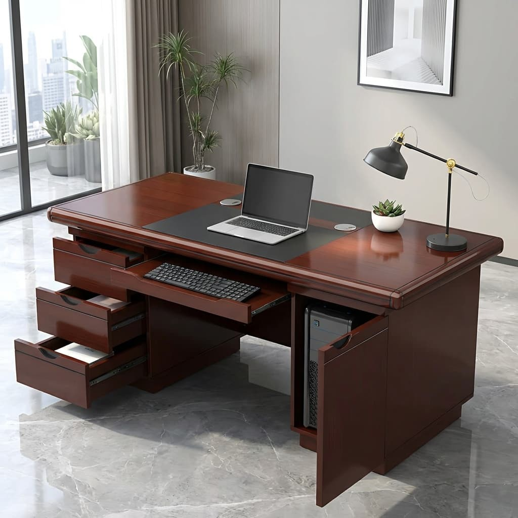 The 1.4 M Executive Mahogany Office Desk is built for durability and long-term use. Its sturdy construction ensures excellent stability, even in busy office settings. The strong frame and well-crafted structure resist wear and tear, making it a reliable choice for professionals who need a dependable workstation. The premium finish is also easy to maintain, helping you keep your office looking neat and professional at all times.