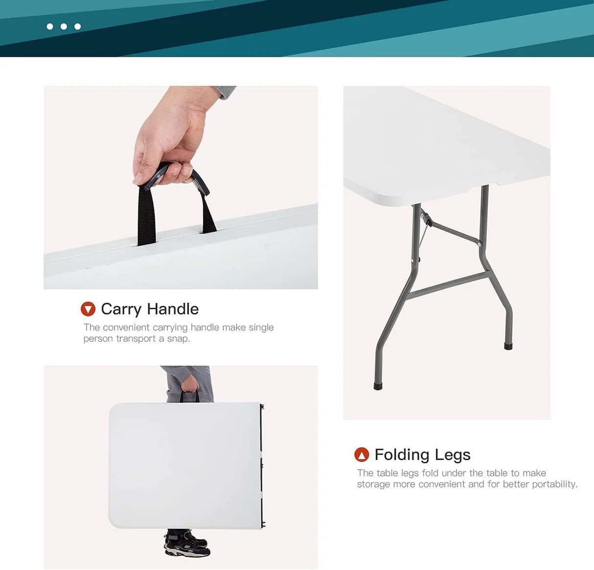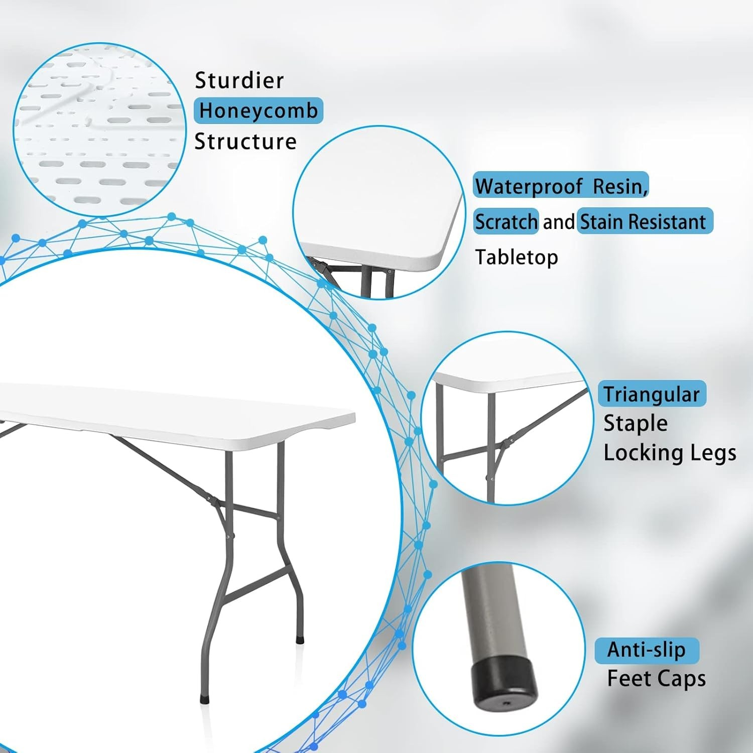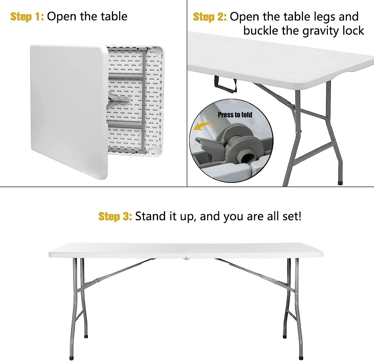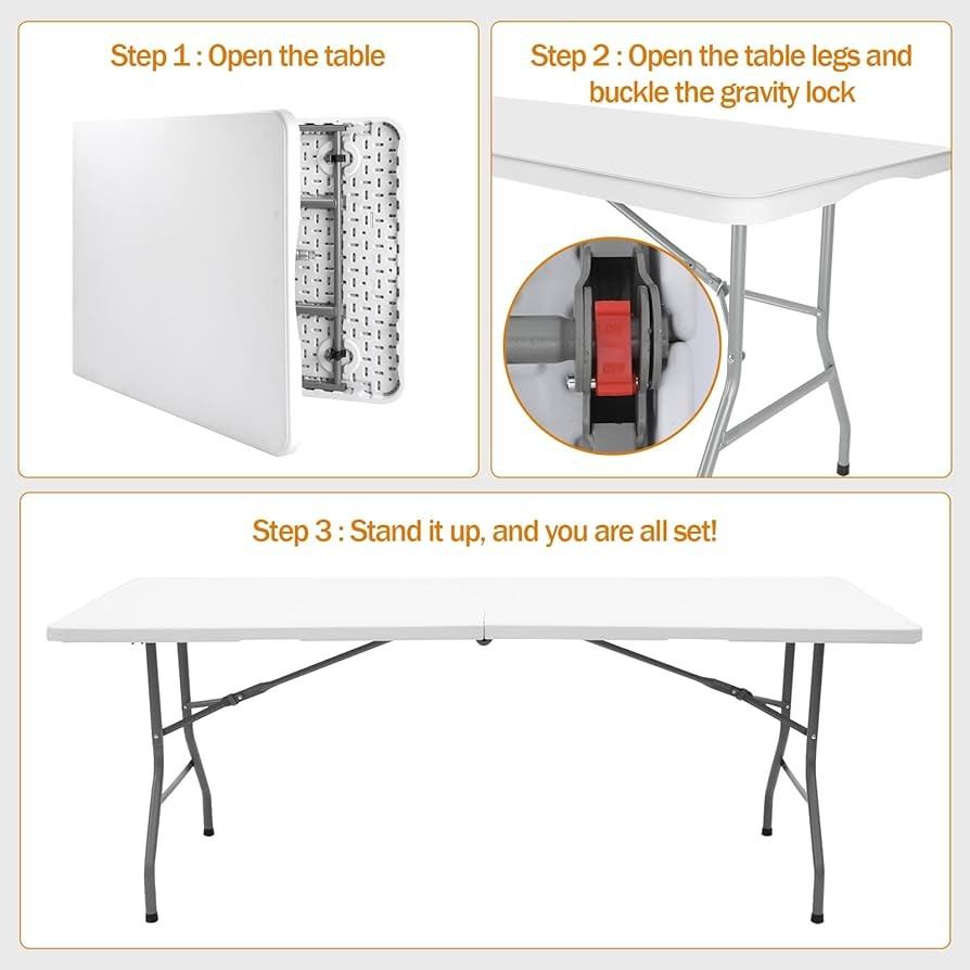 - High-quality, durable plastic tabletop with reinforced frame