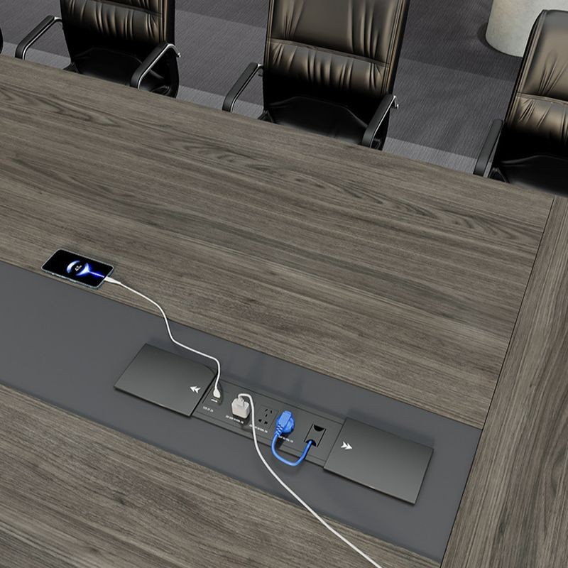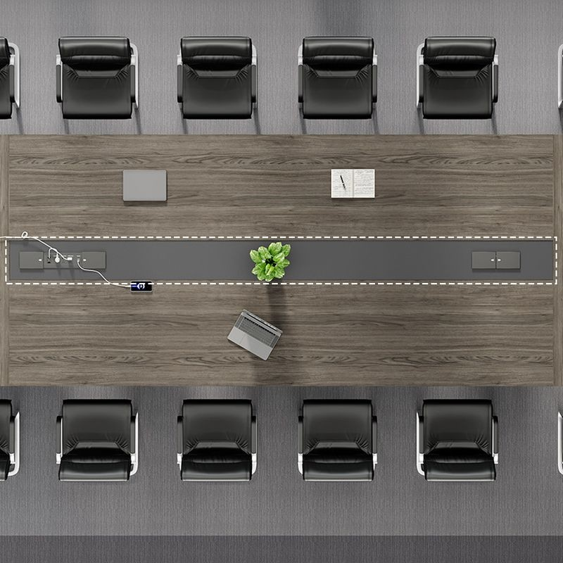 For enhanced functionality, the 10-seater boardroom table can be equipped with optional cable management solutions, including built-in grommets and concealed wire channels. These features help maintain a tidy, clutter-free workspace while supporting seamless connectivity for laptops, monitors, conferencing systems, and charging devices.
