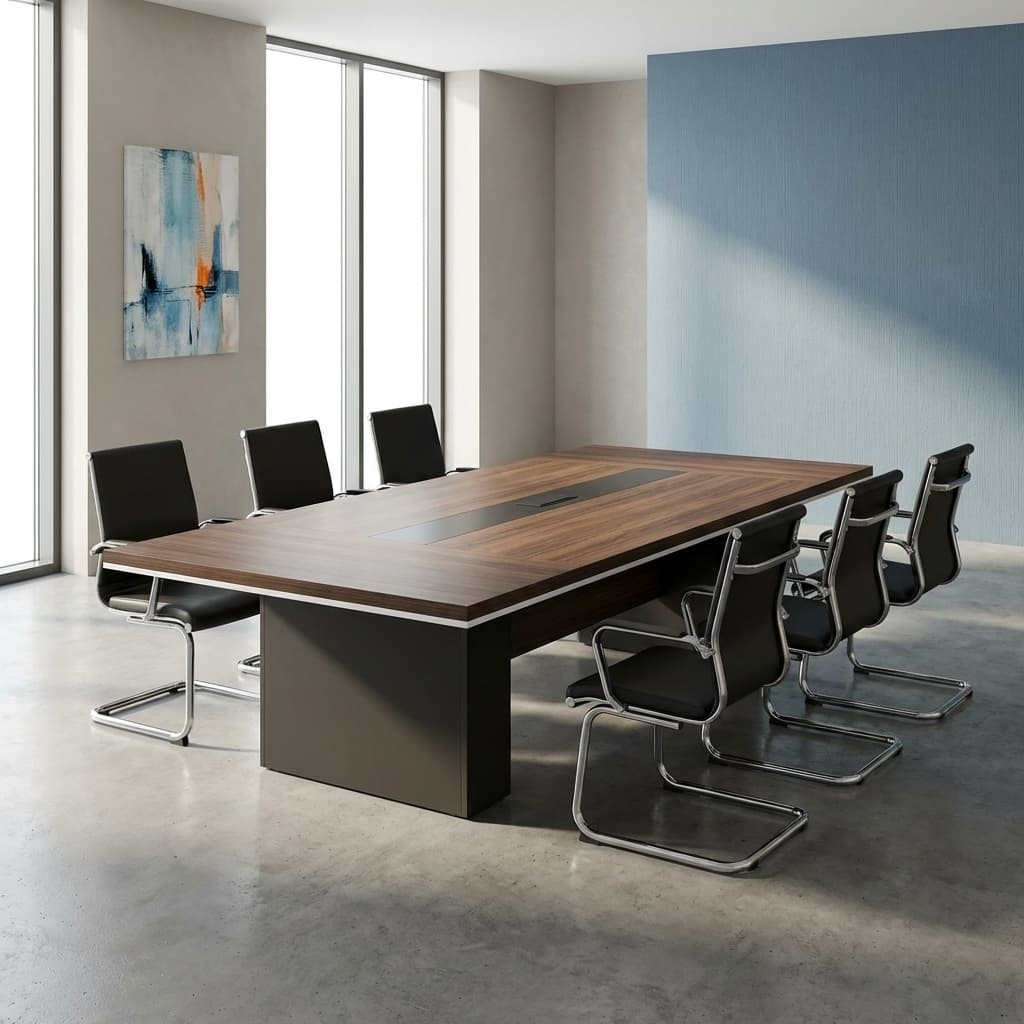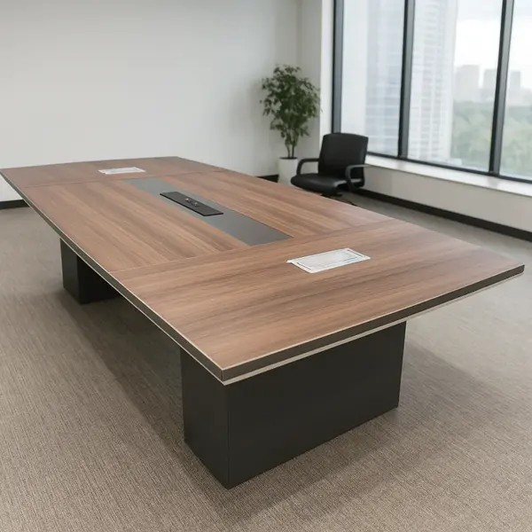 Designed with stability and functionality in mind, the wide panel legs or reinforced metal frame prevent wobbling and ensure a firm foundation. Furthermore, the table supports neat cable management for presentation tools and conference devices, helping maintain a clutter-free meeting space.