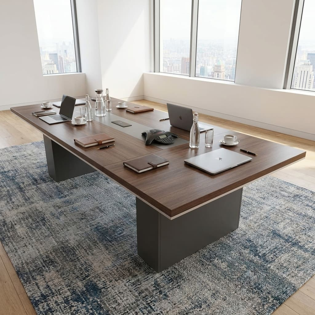 Functional Layout: Spacious tabletop for laptops, papers, and conference essentials.