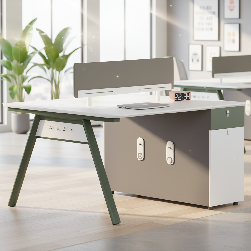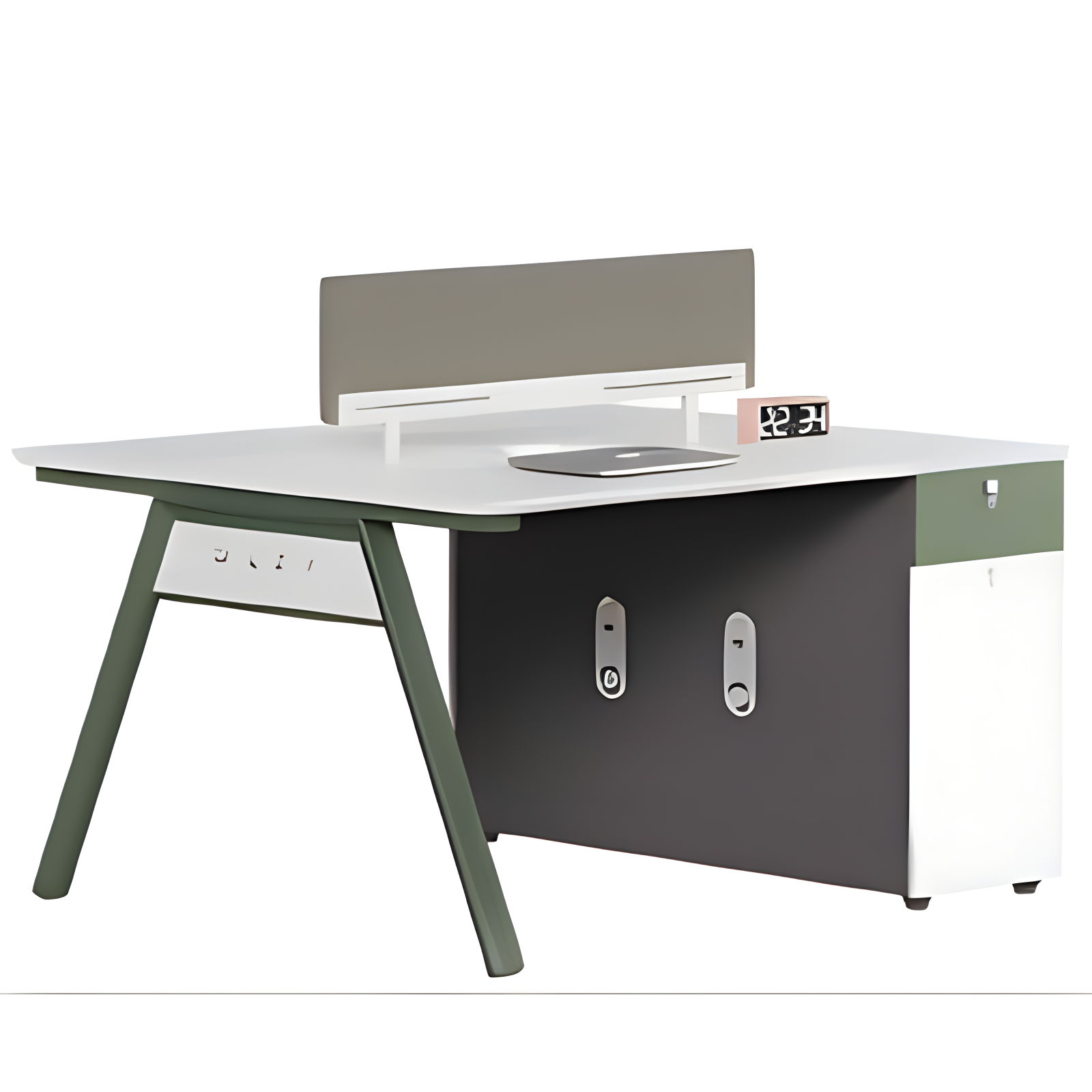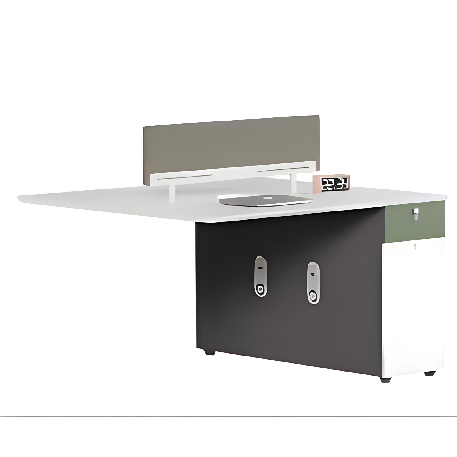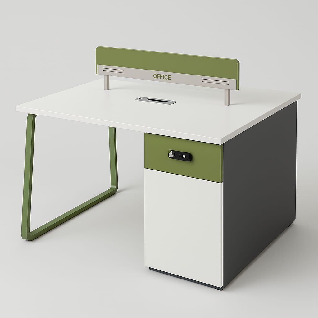 The workstation is designed with ergonomics in mind. Each workstation side provides ample legroom and a spacious surface to accommodate laptops, monitors, and essential office tools. The central divider helps reduce distractions while allowing easy communication between team members when needed. Cable management features keep wires organized, preventing clutter and creating a clean, professional work environment.