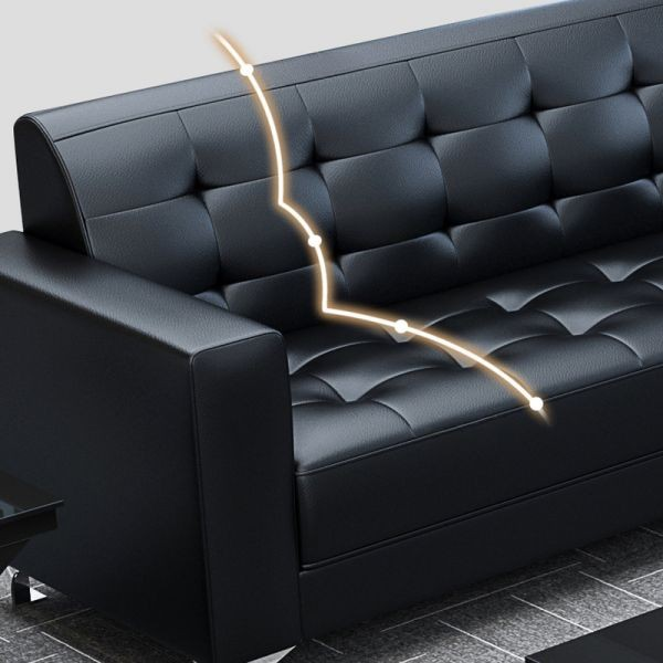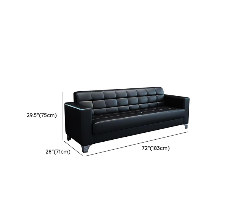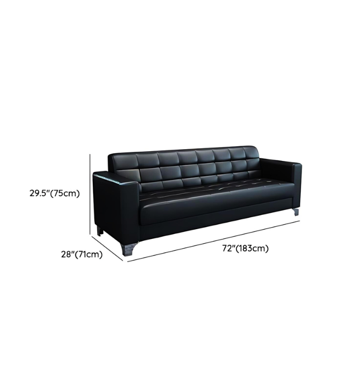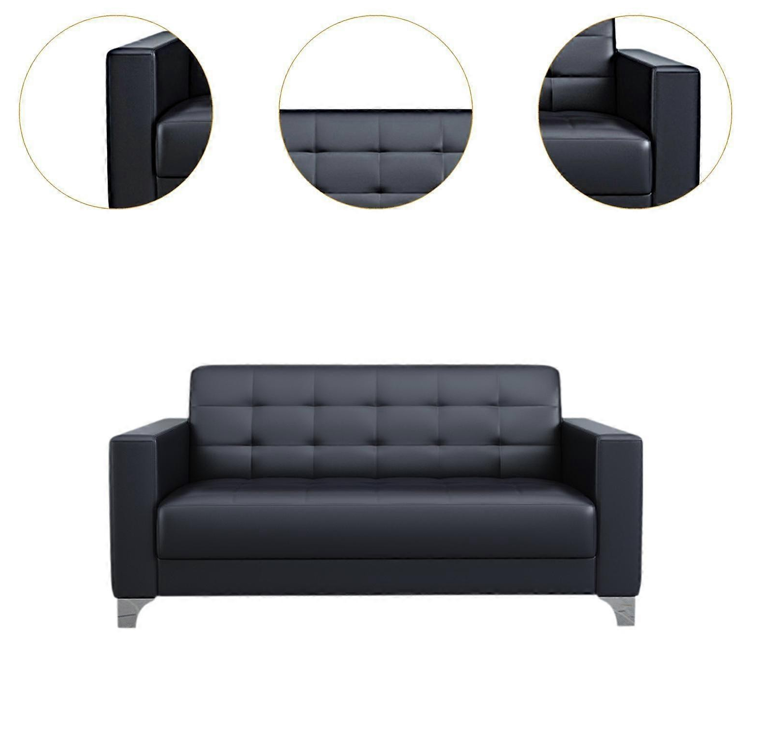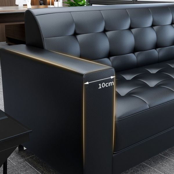 The sofa has a sturdy wooden frame and high-density foam cushions that provide firm, long-lasting support. Each seat supports proper posture, allowing guests to sit comfortably for hours. The leather surface cleans easily with a damp cloth, making it practical for busy offices where hygiene matters.