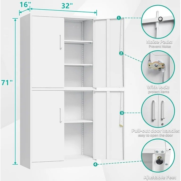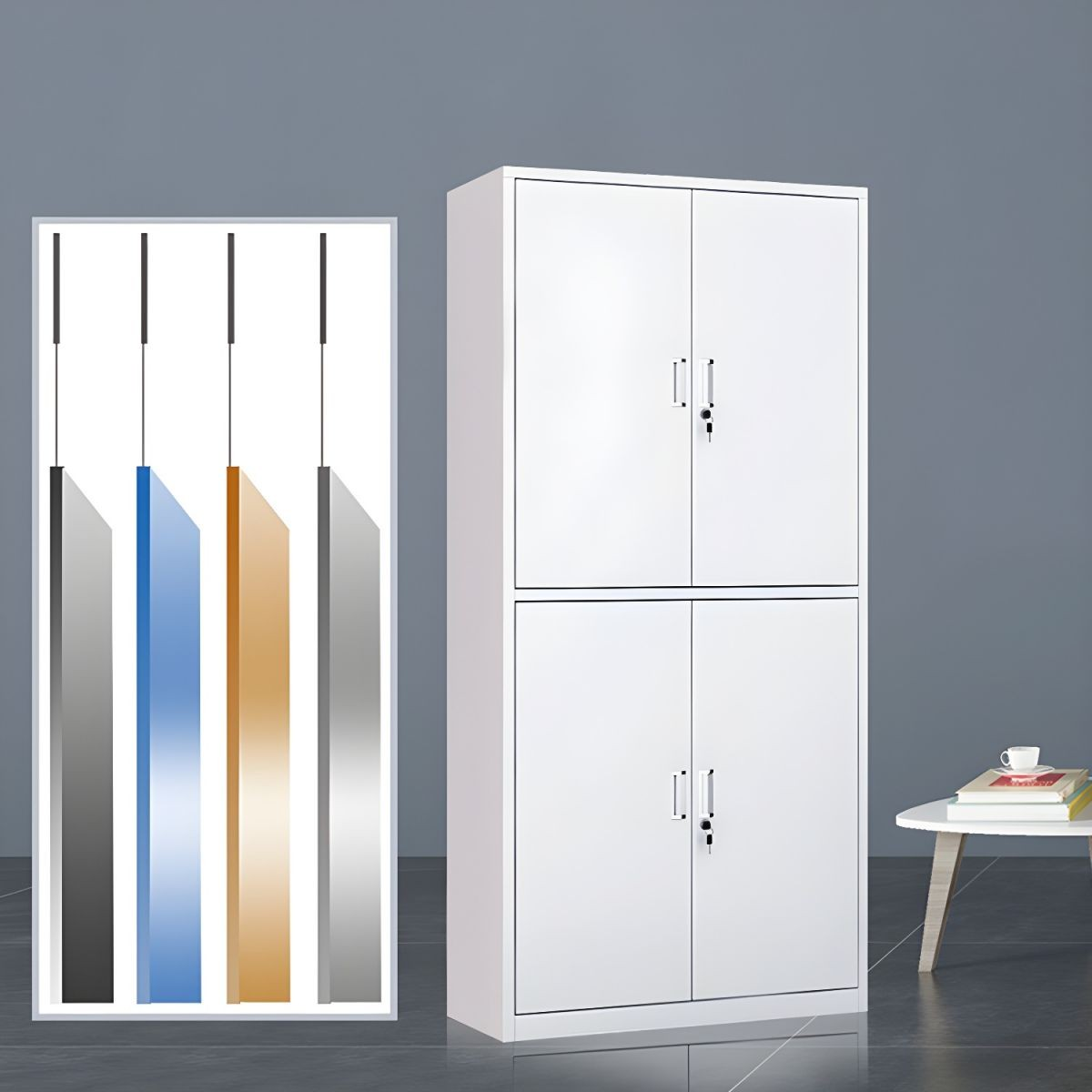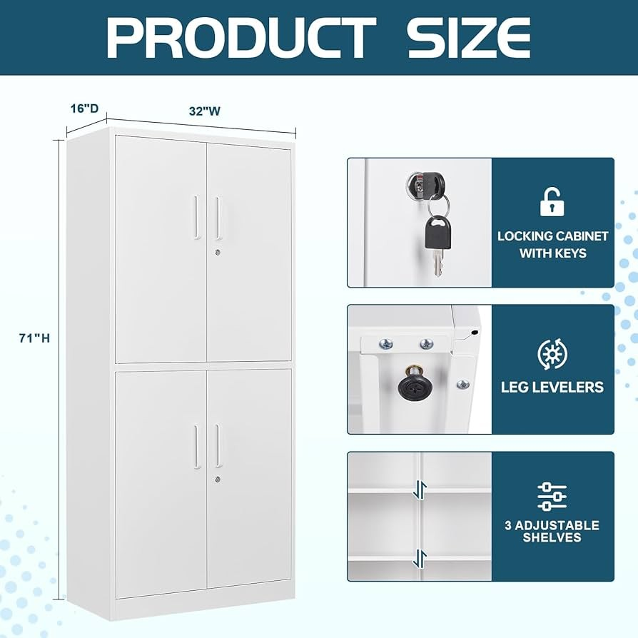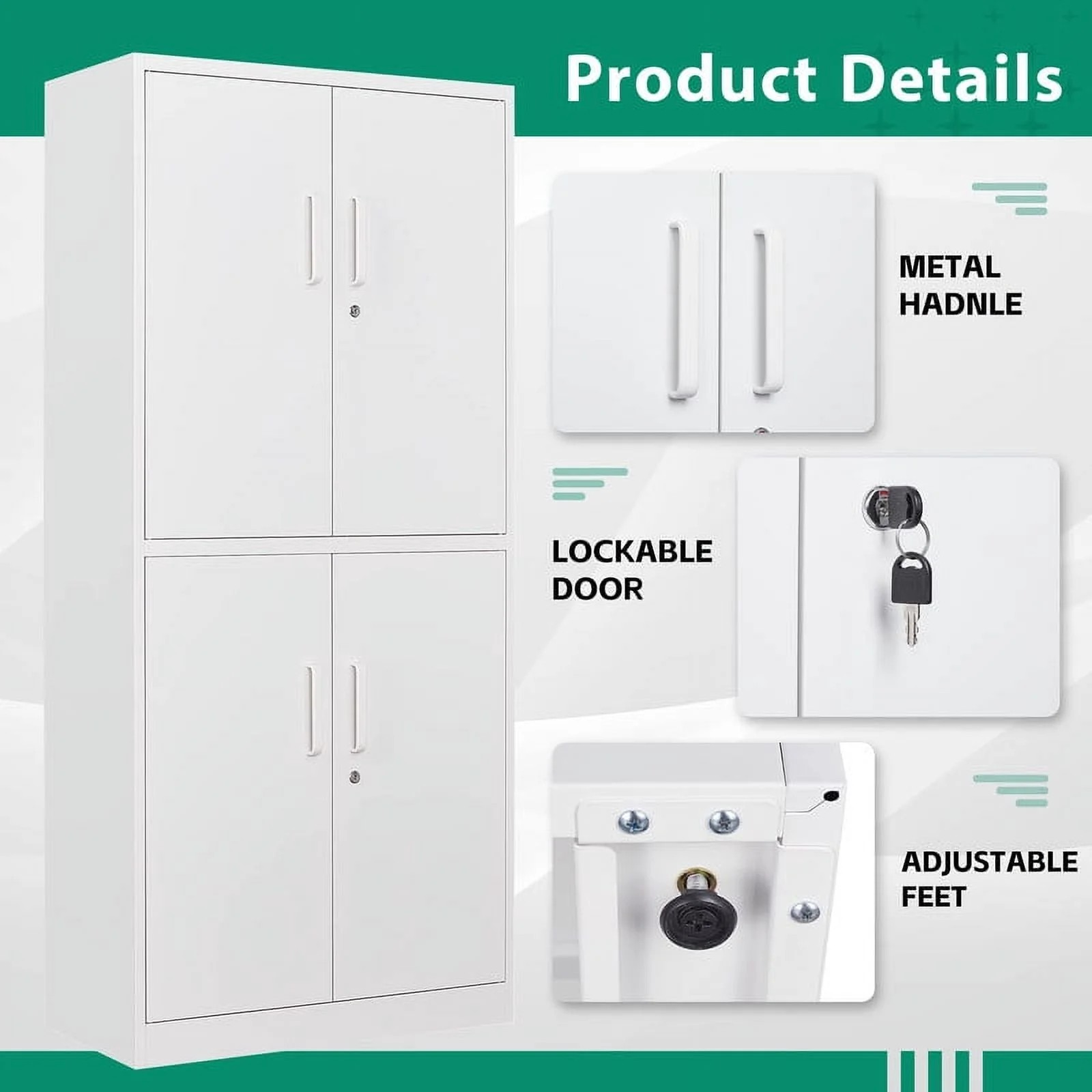 This office cabinet includes four spacious compartments with individual lockable doors. It provides enough space to store files, documents, office supplies, and personal belongings. The design helps users organize items into clear sections for easy access. This structure improves workflow and boosts productivity in busy environments. The secure locking system protects sensitive documents and valuable items. It gives users confidence in shared or high-traffic offices.