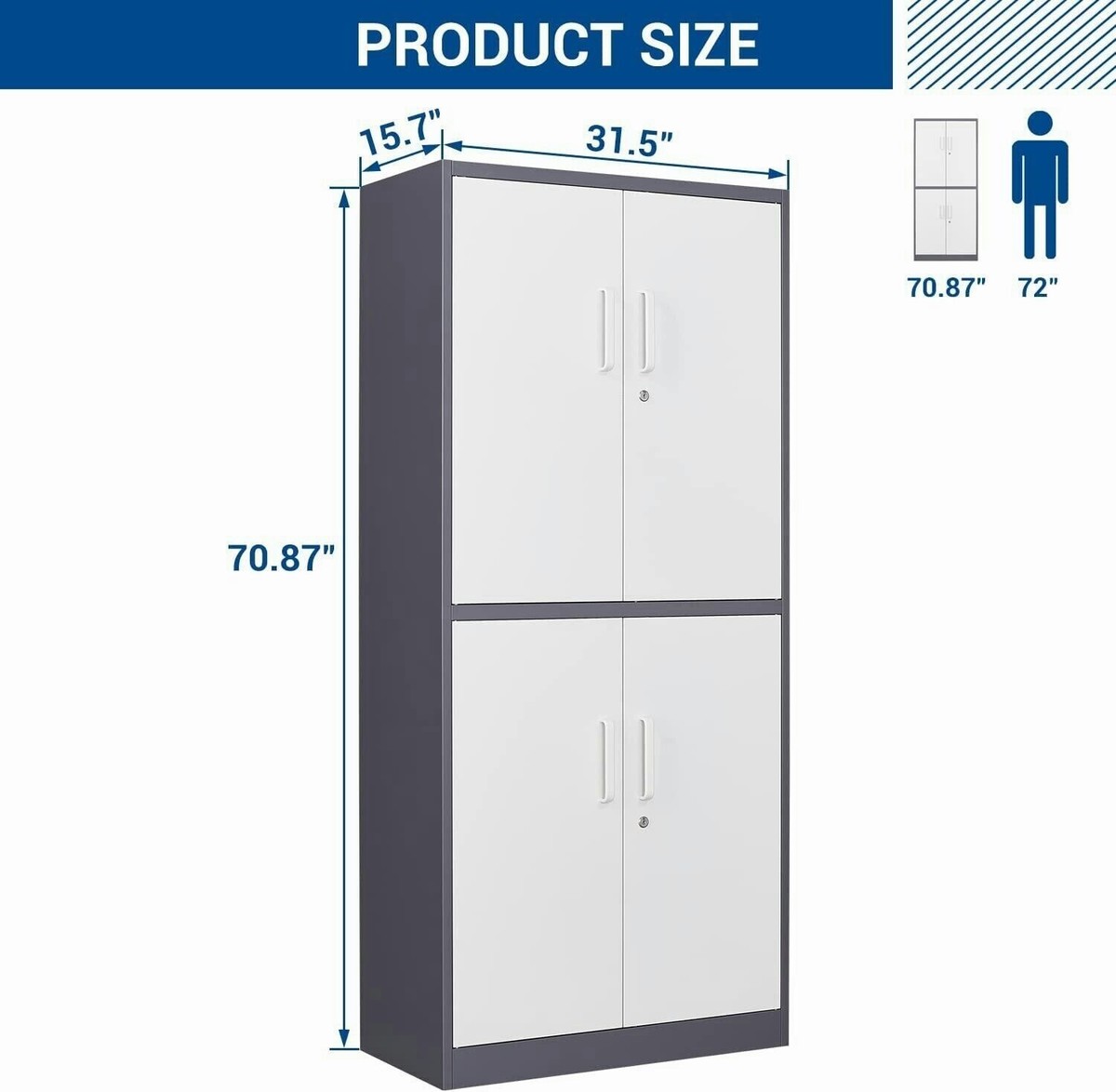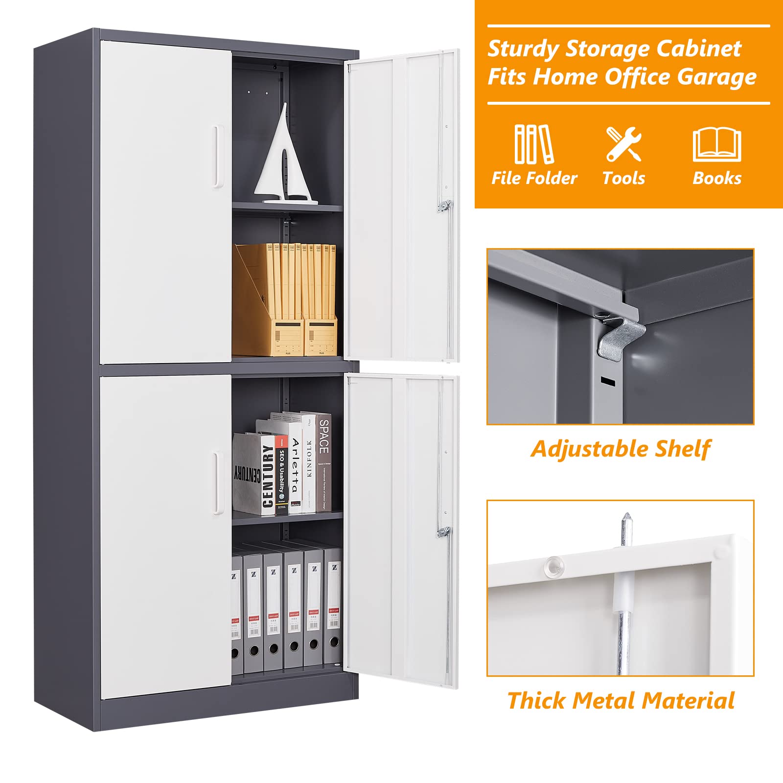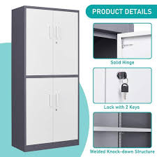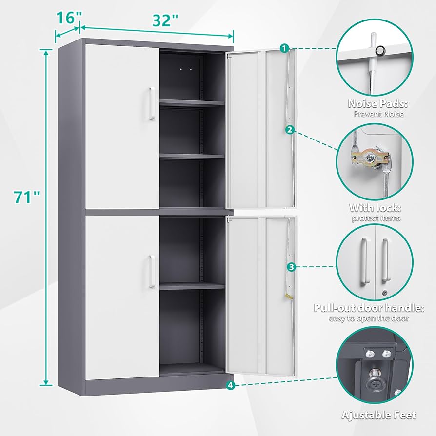 The 4 Door Steel Storage Office Cabinet features multiple compartments that allow users to categorize and store documents efficiently. Adjustable internal shelves provide flexibility, enabling you to store files, archive boxes, office equipment, and cleaning supplies with ease. Furthermore, the generous storage capacity helps reduce clutter and promotes a well-organized workspace. This structured storage system improves productivity by keeping essential items within reach.