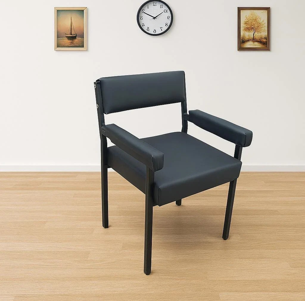 Enhance your office seating with the Armrest Black Leather Guest Chair, designed to offer a perfect blend of comfort, durability, and professional style. Upholstered in high-quality black leather and equipped with sturdy armrests, this chair provides excellent support for guests, clients, or visitors in corporate offices, reception areas, and conference rooms. Its sleek, modern design complements any workspace décor while ensuring long-lasting use. Lightweight yet robust, the chair is easy to move and maintain, making it an ideal addition to offices across Kenya, particularly in Nairobi. Deliver a lasting impression of professionalism and comfort with this elegant guest chair.