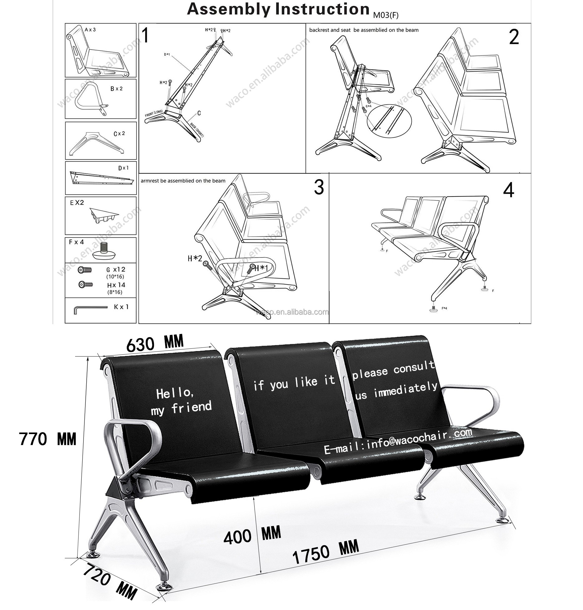 - Widely Suitable Use – Stylish,economical, and durable 3 seat long bench design is ideal for a busy occasion and heavy demand. Stylish fits perfectly for living room, office, bank, Hall, lobby, Hospital, Exhibition , Barber Salon, Beauty Salon, Office Waiting Room.