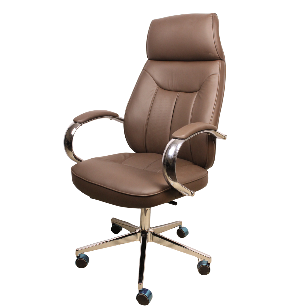 With its deep brown leather, sleek lines, and polished finish, this chair elevates the aesthetic of any workspace. It pairs beautifully with wooden desks, glass tables, or modern office furniture. The executive design not only enhances comfort but also conveys authority and professionalism, making it perfect for managers, directors, or anyone looking to create an impressive office environment.