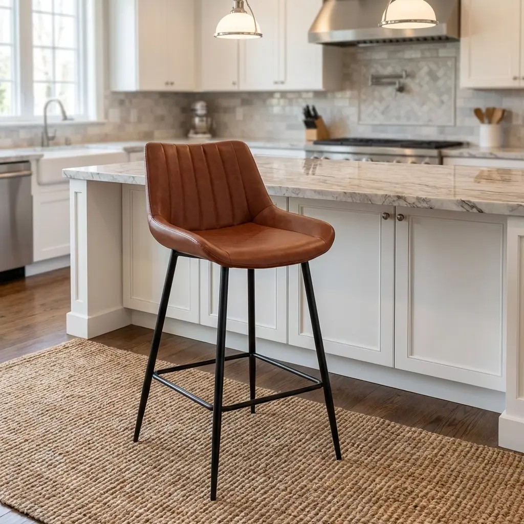 We crafted this barstool with high-quality faux or genuine leather (depending on model) that provides a smooth, luxurious finish. The cushioned seat offers exceptional comfort for long conversations, meals, or gatherings, while the curved backrest supports proper posture and adds ergonomic convenience. Its rich brown tone complements a wide range of interiors, from modern and industrial to rustic and traditional décor.