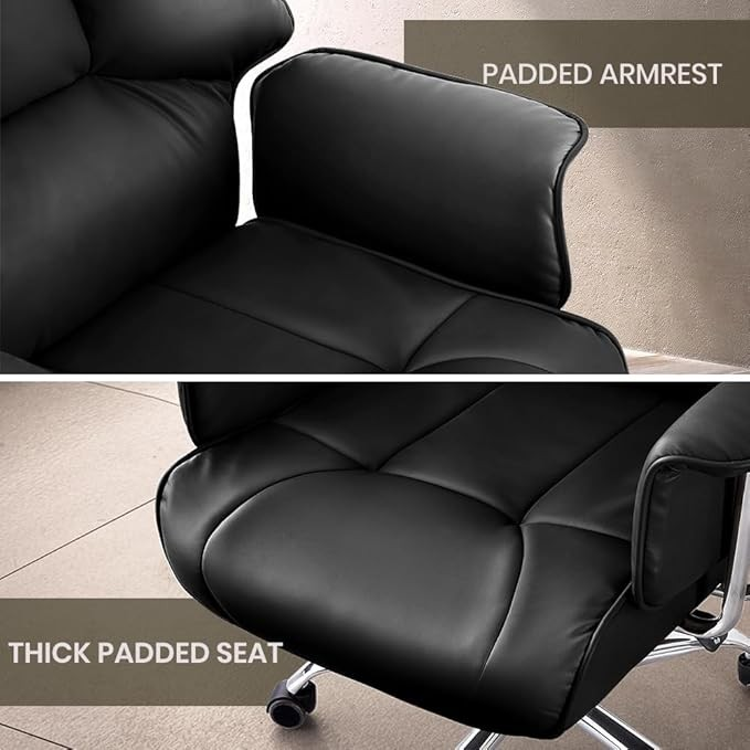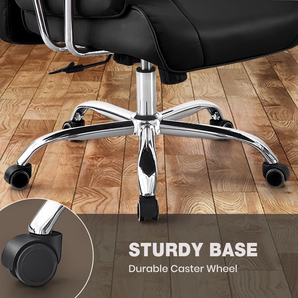 The chair’s durable leather upholstery not only adds a luxurious touch but is also easy to clean and maintain. The polished base with smooth-rolling casters allows effortless mobility, while the reclining and tilt-lock mechanisms provide customizable seating positions for maximum relaxation during long work hours. Elevate your workspace with a chair that reflects your status and enhances your office environment.