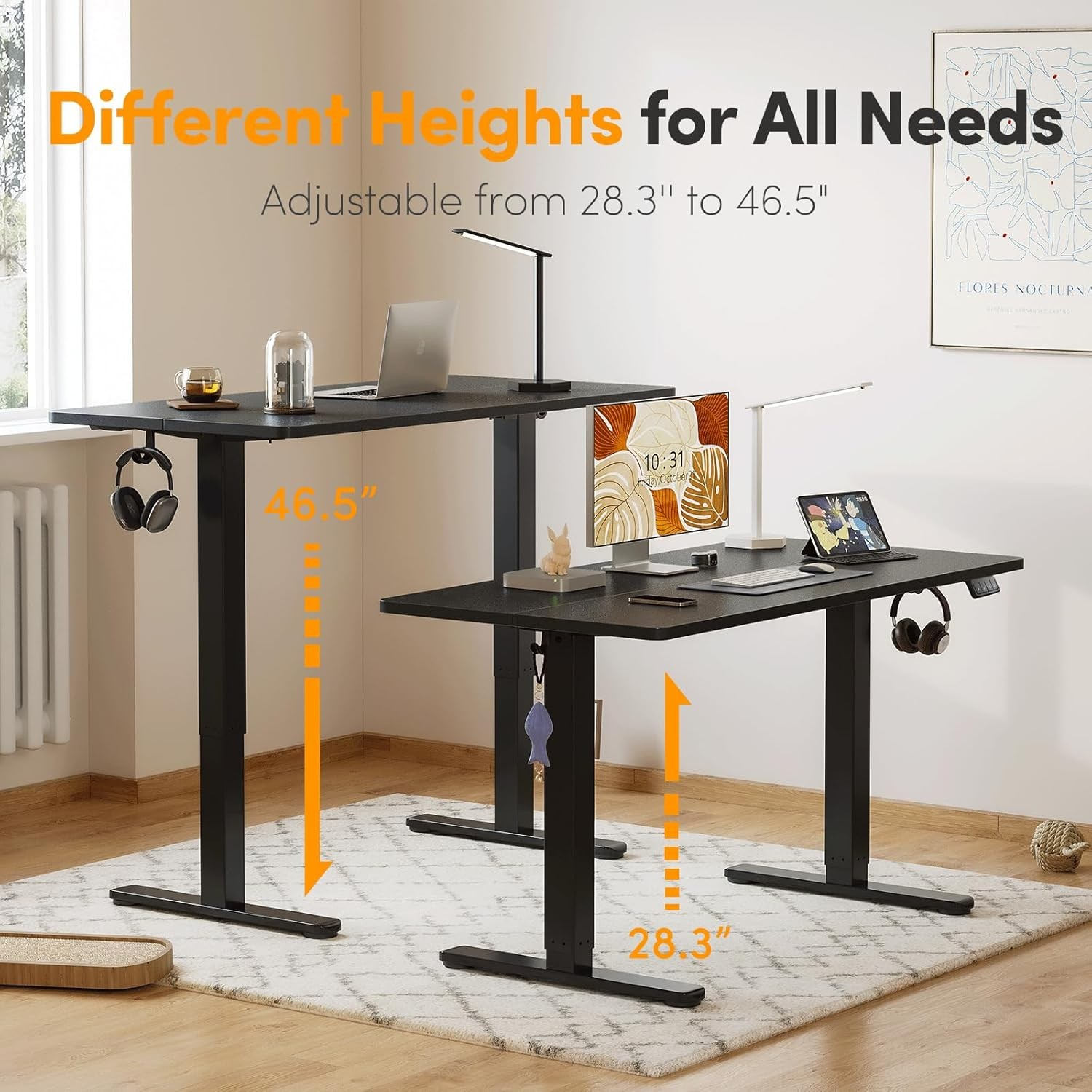 Transform your workspace with the Electric Adjustable Height Desk, designed to boost productivity, comfort, and ergonomic health. With the touch of a button, easily switch between sitting and standing positions, promoting better posture and reducing strain during long work hours. Perfect for modern offices, home workspaces, or creative studios, this desk combines sleek design with high functionality.