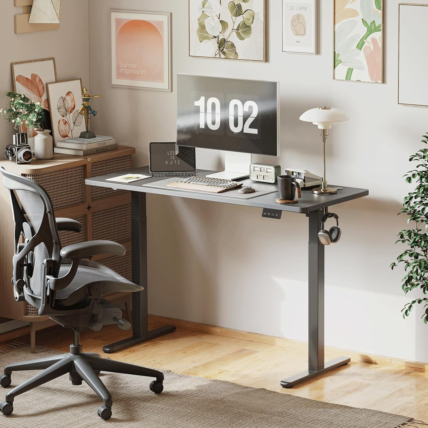 Moreover, the desk is designed with ergonomics in mind. It helps maintain correct posture, reducing strain on the back, neck, and shoulders. Also, the spacious tabletop provides plenty of room for multiple monitors, documents, and other essentials. Its minimalist design fits seamlessly into any office or home setup.