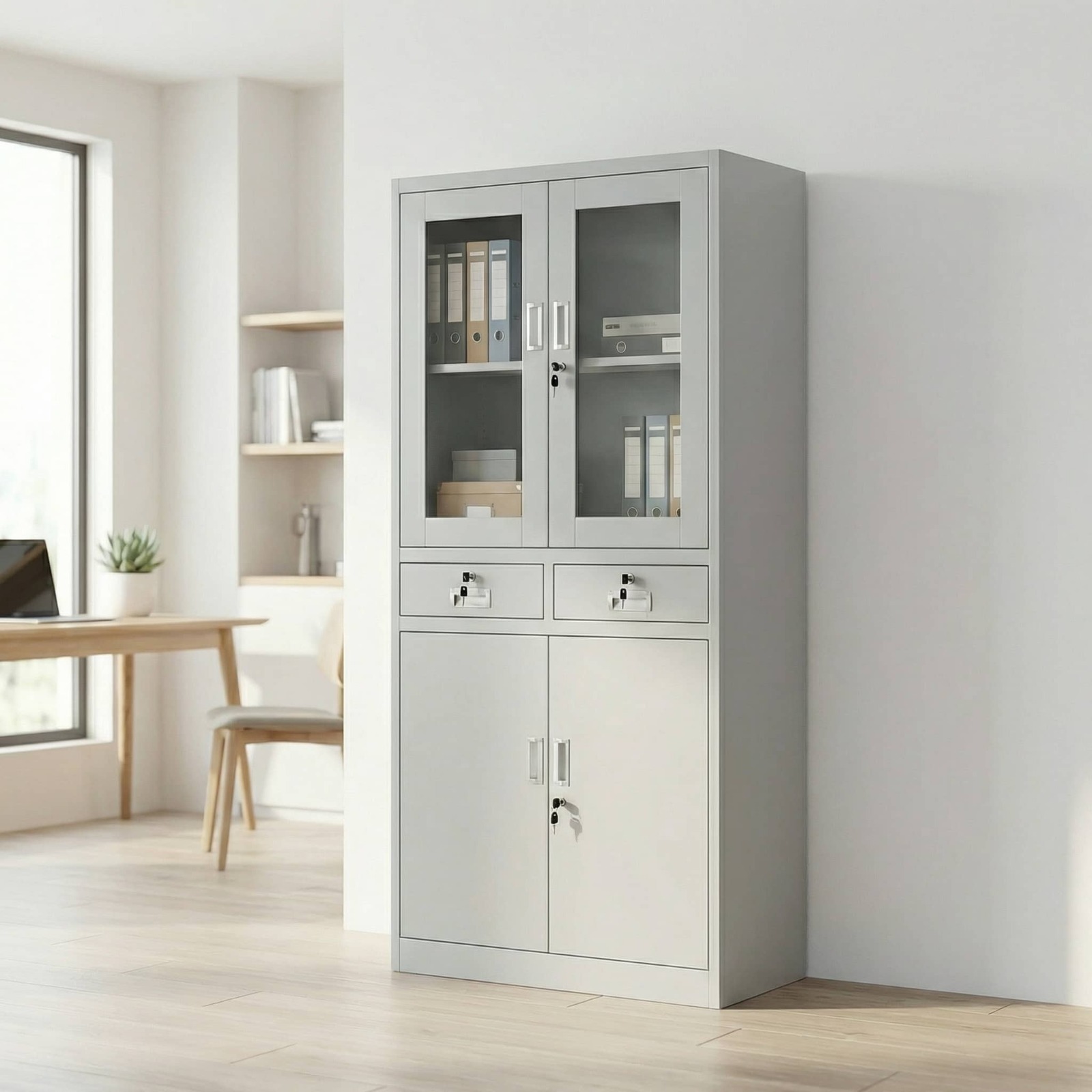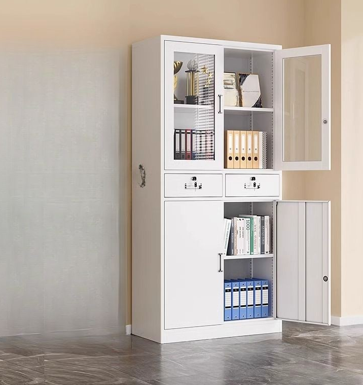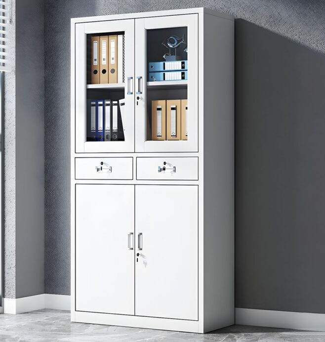 Firstly, the cabinet’s full glass doors provide a clear view of the organized brilliance within. Transitioning effortlessly from traditional cabinets, this design choice offers a sleek and modern touch to your office space, transforming the ordinary into the extraordinary.