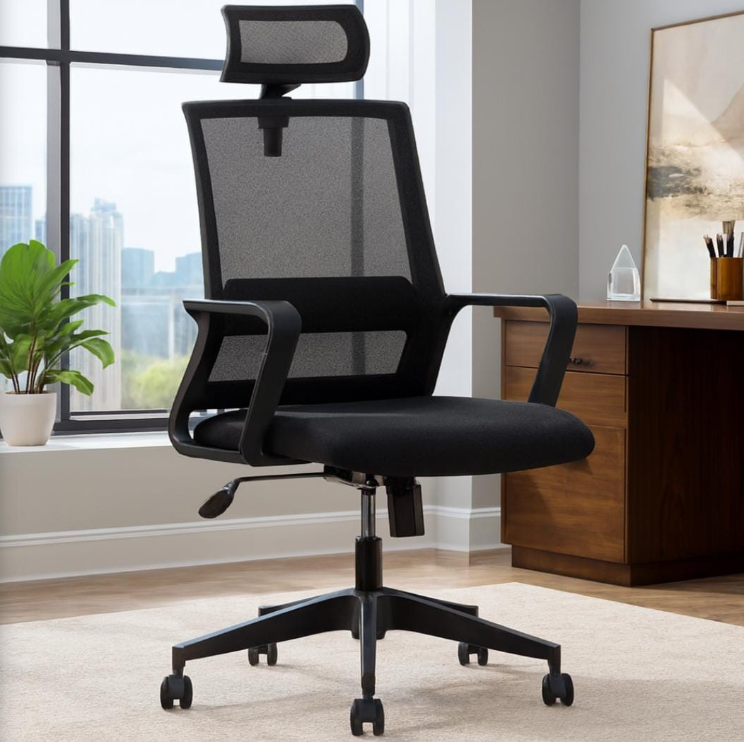 Upgrade your workspace comfort with the High Back Ergonomic Office Chair, designed to provide superior support for long working hours in offices, home workstations, and study rooms. This chair features a high-back design that supports your entire spine, helping maintain proper posture and reducing strain on the back and shoulders. The ergonomic structure, combined with breathable materials and soft cushioning, ensures maximum comfort throughout the day. Its adjustable height, smooth swivel function, and durable rolling casters allow effortless movement and flexibility while working. Built with a strong frame and premium upholstery, this office chair offers both durability and modern style, making it an ideal choice for professionals, students, and remote workers. Whether placed in a corporate office, home office, or conference room, the High Back Ergonomic Office Chair enhances productivity while adding a sleek and professional look to your workspace.