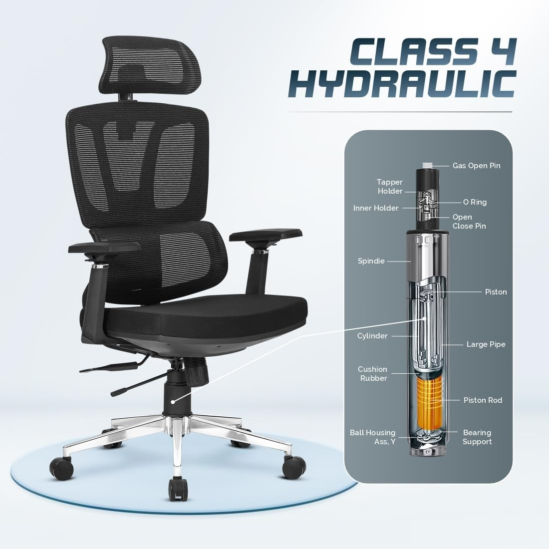- Adjustable seat height with smooth gas lift mechanism