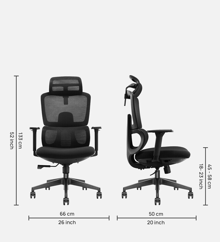 - Dimensions: High-back office chair design