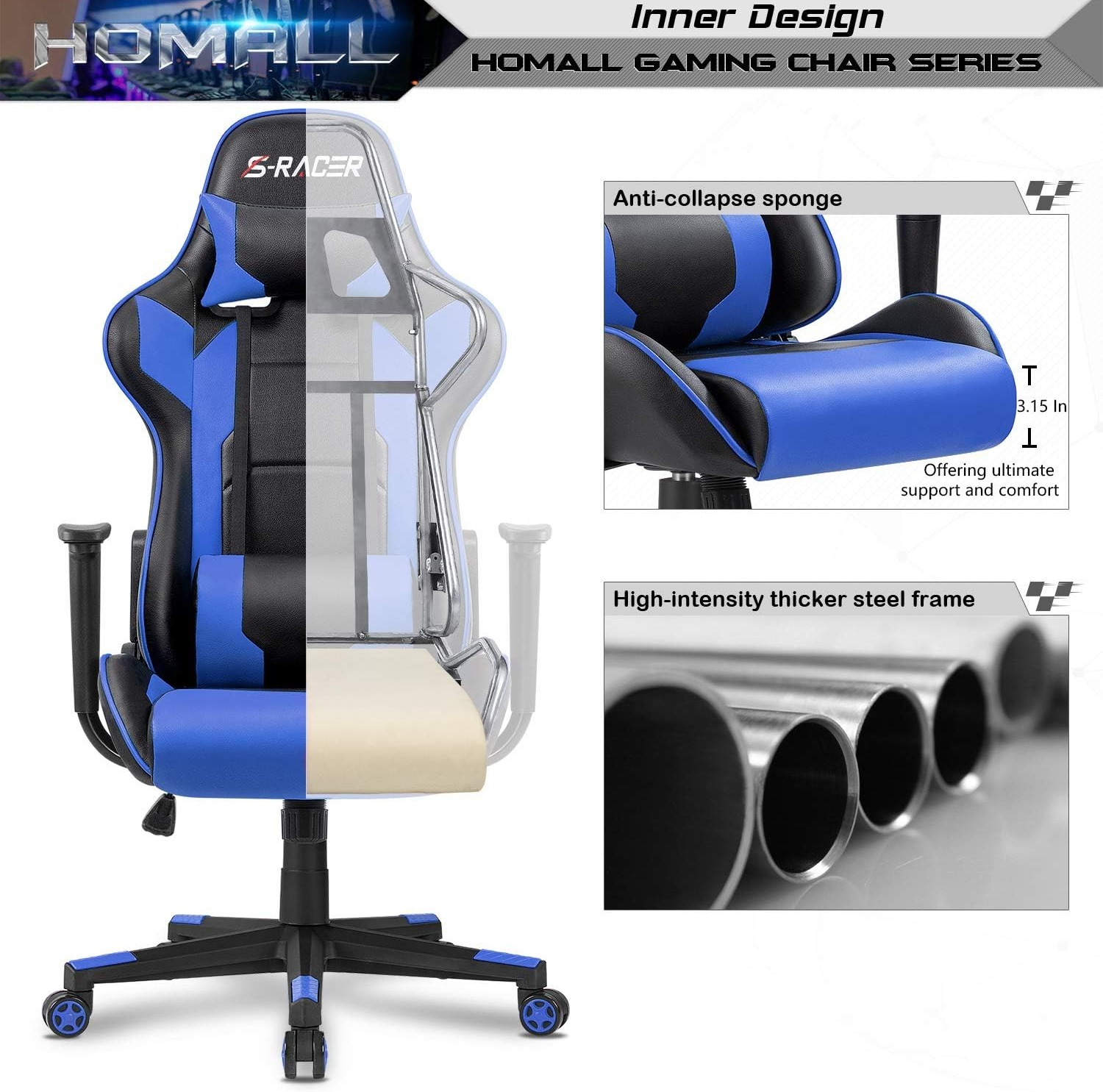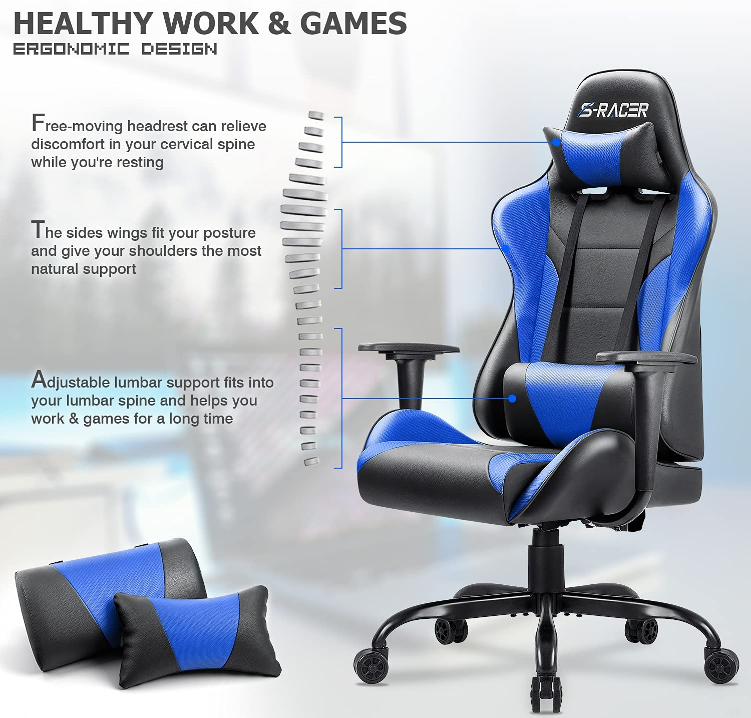 - 【DUAL-BACKREST】: Ergonomically designed “Dual-Backrests” allow the spinal column to maintain its natural shape and keep the backbone free from pressure even when reclined.