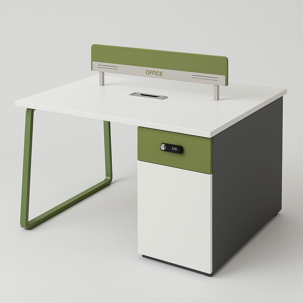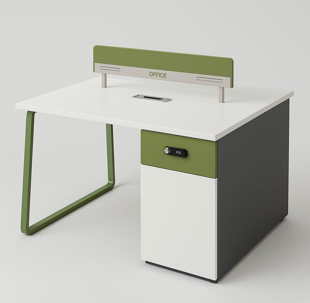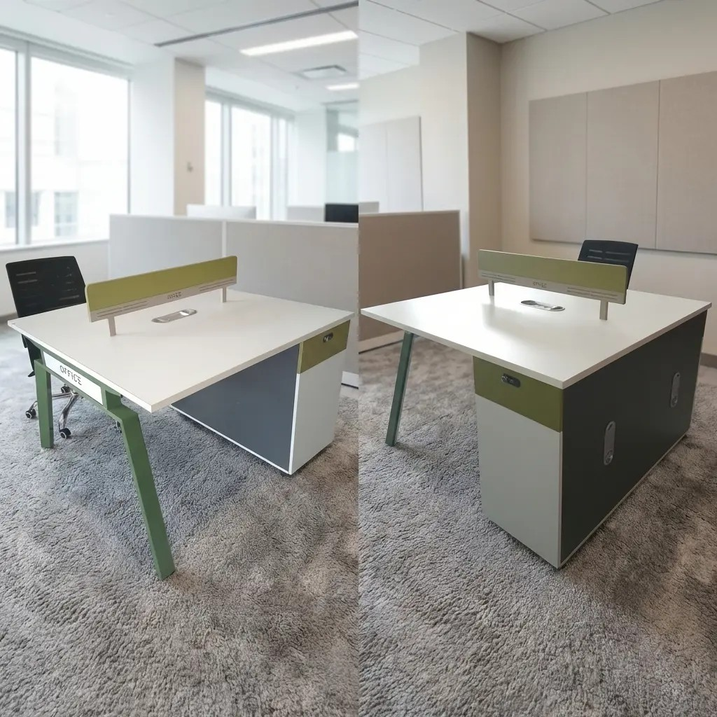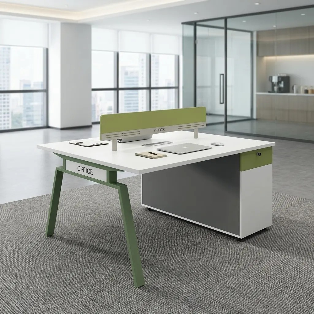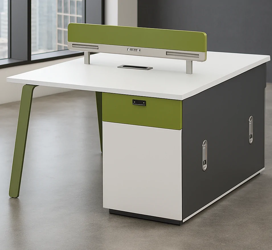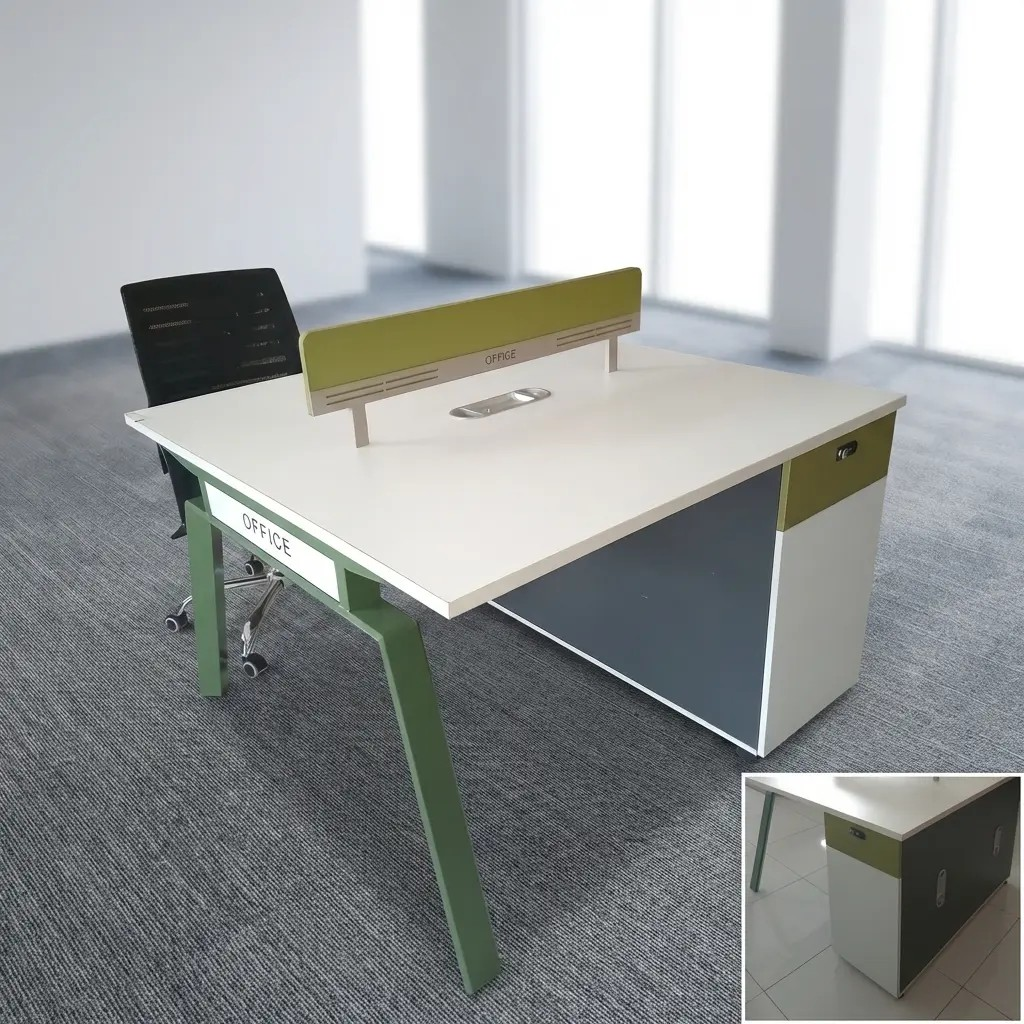 With a clean, minimalist design, this workstation seamlessly fits into modern office interiors. Its compact layout maximizes floor space while providing sufficient work areas for two people. The sleek finish complements various office furniture styles, from contemporary to classic, making it a versatile choice for different environments.