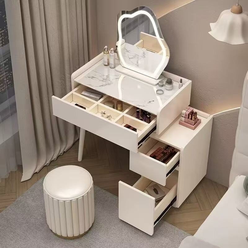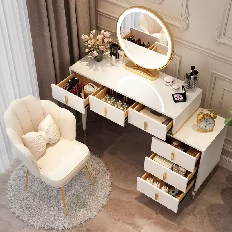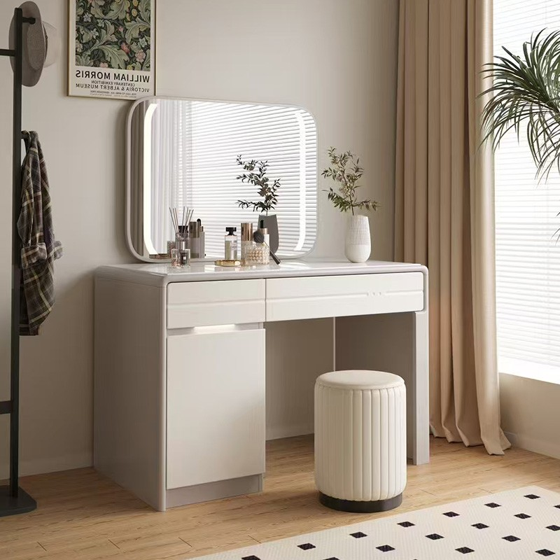 The table offers a smooth and spacious tabletop for cosmetics, accessories, and personal items. In addition, the well-designed layout helps keep essentials organized and within easy reach. As a result, users can enjoy a clutter-free and comfortable dressing experience.