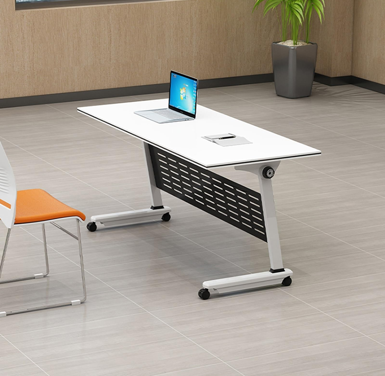 Upgrade your training and workspace setup with the Modern Foldable Office Training Desk, designed for flexibility, convenience, and contemporary style. This desk features a sleek, durable tabletop and a foldable frame that allows for easy storage and transport, making it ideal for training rooms, workshops, classrooms, and flexible office layouts. Its sturdy construction ensures stability during use, while the modern design complements professional environments. Lightweight yet robust, this foldable desk is perfect for creating efficient, organized workstations that can adapt to changing office needs.