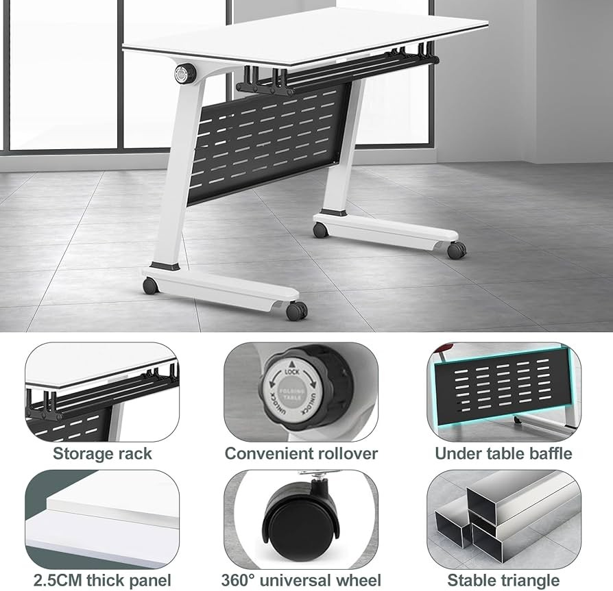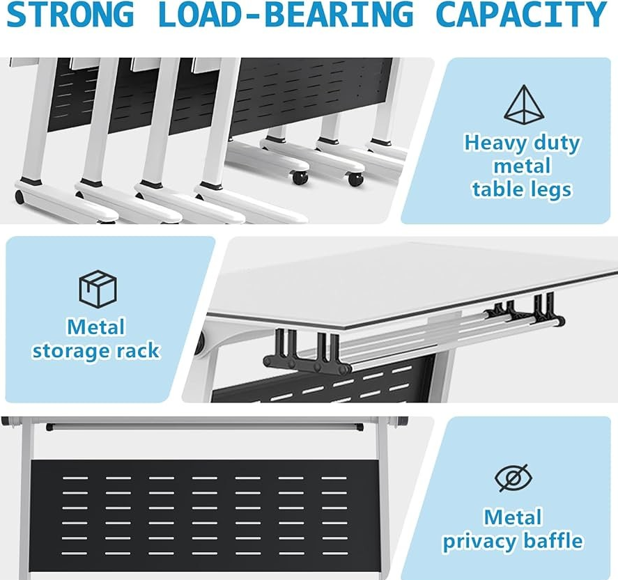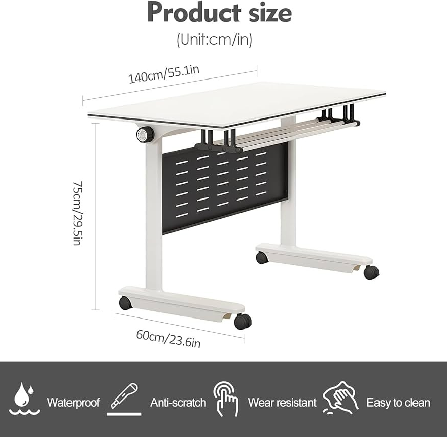 Crafted from high-quality materials, the Modern Foldable Office Training Desk is built to last. The sturdy tabletop provides a smooth, reliable surface for writing, laptops, or training materials. Its durable frame ensures stability during use, while the foldable mechanism allows quick assembly and safe storage. The desk can withstand frequent use without compromising structural integrity, making it ideal for both professional and educational settings.