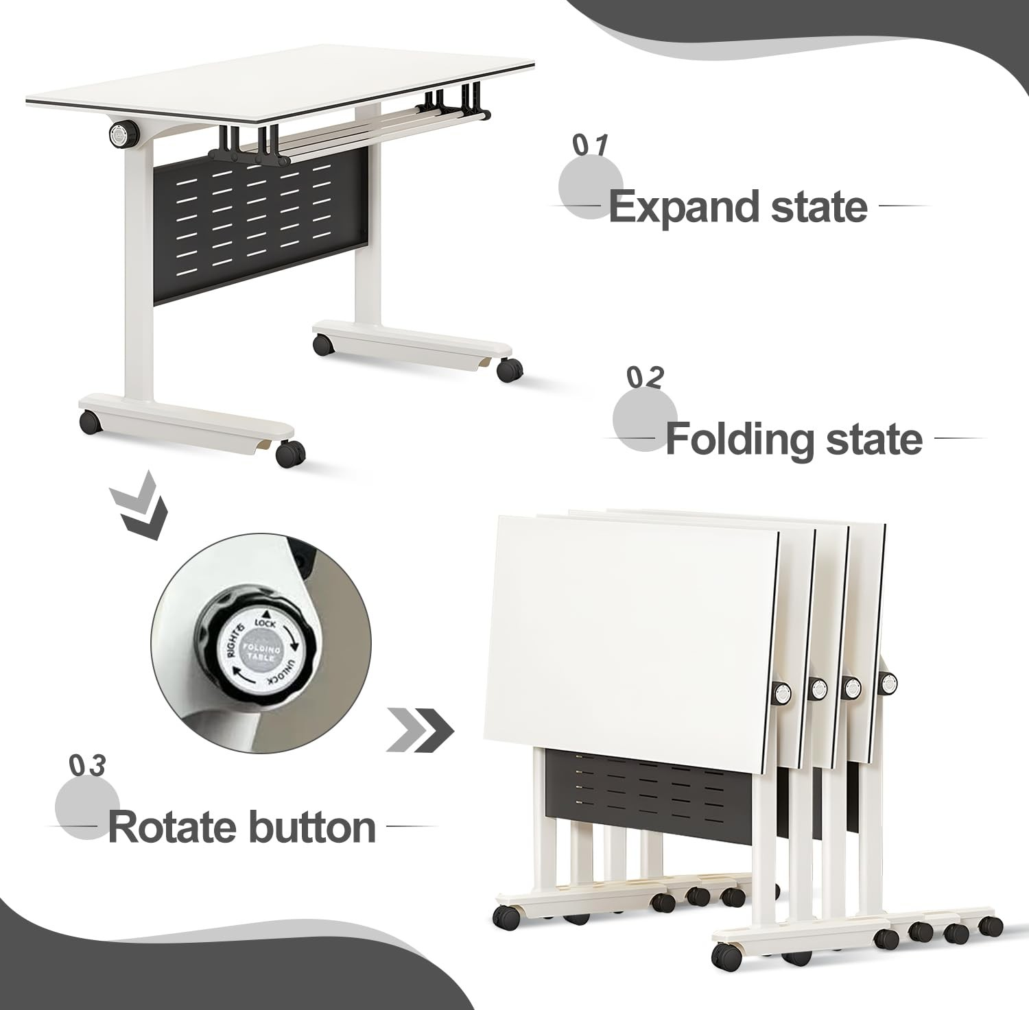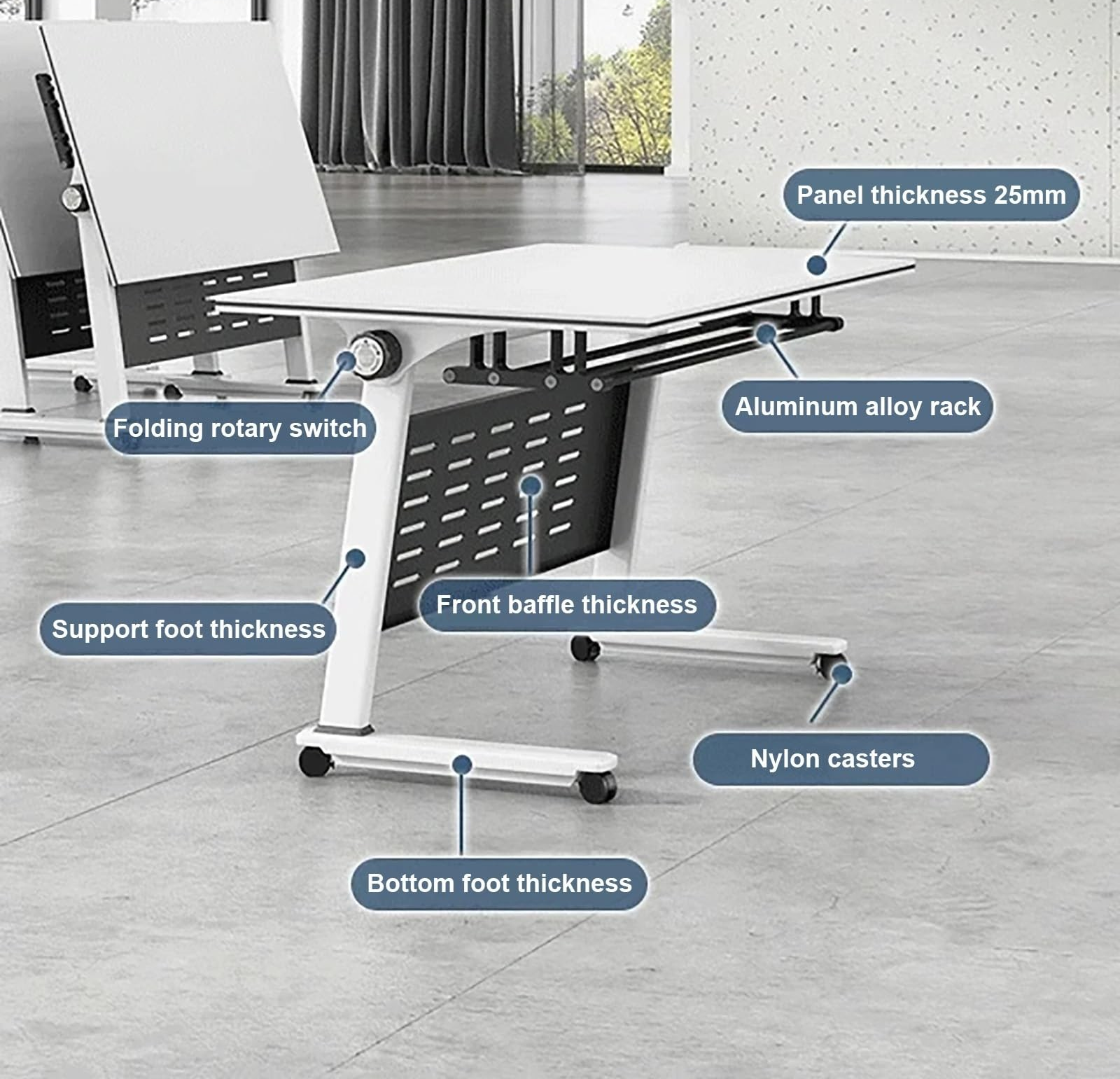 One of the key advantages of the Modern Foldable Office Training Desk is its portability. The foldable design allows multiple desks to be stacked or stored compactly, freeing up valuable space when not in use. The lightweight frame makes relocation simple, while the locking mechanism ensures stability when the desk is in use. This feature makes it an excellent choice for multi-purpose rooms, temporary workspaces, or mobile training setups.