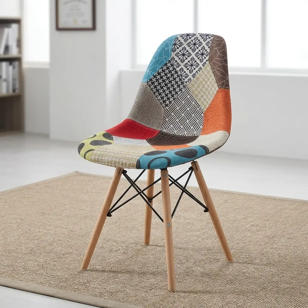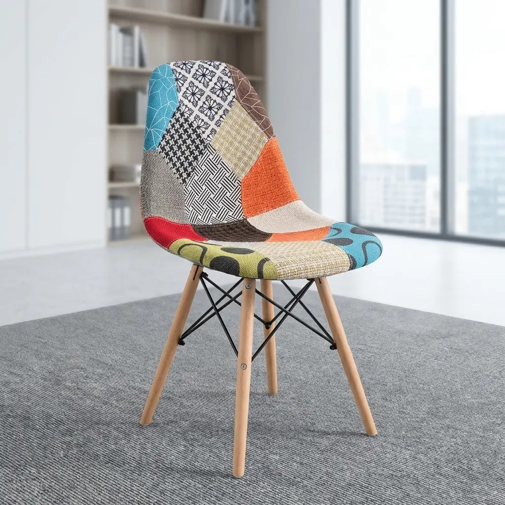 The Multicolored Fabric Eames Dining Chair is a perfect blend of modern design, comfort, and vibrant style. Inspired by the iconic Eames aesthetic, this chair adds a sophisticated yet playful touch to dining spaces, kitchens, cafes, and restaurants. Its multicolored fabric upholstery creates a lively and eye-catching look, making it an excellent choice for interiors that aim to stand out while maintaining elegance and functionality.