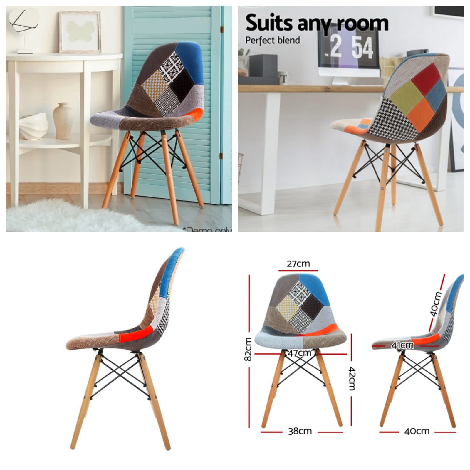 This dining chair is highly versatile and can complement a wide range of interior styles, including modern, Scandinavian, minimalist, and eclectic designs. Its multicolored upholstery adds character and vibrancy to any space, making it ideal for dining rooms, cafes, creative offices, and hospitality settings. It effortlessly enhances interior décor while maintaining a clean and refined appearance.