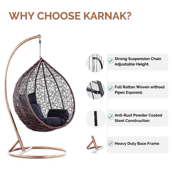Safety is built into the design with strong suspension hardware or a stable stand (depending on the model). The chair’s durable frame ensures stability and supports everyday use, giving you peace of mind while relaxing. It is suitable for both adults and teens, making it a reliable addition to any home.