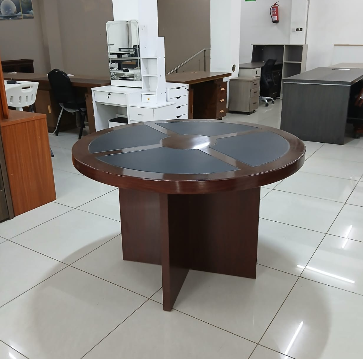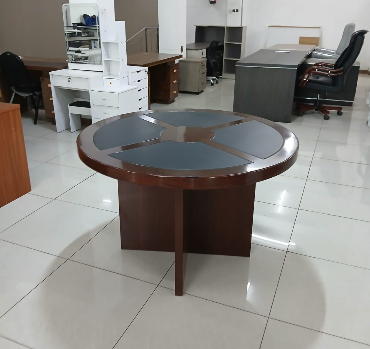The Round Conference Meeting Table is designed to foster collaboration, communication, and productivity in professional office environments. Its spacious circular design encourages inclusivity, making it ideal for team meetings, board discussions, and collaborative brainstorming sessions. Crafted from premium materials, the table offers a sturdy, stable, and durable surface that can withstand daily use in busy offices, conference rooms, or co-working spaces. The sleek, modern finish adds a touch of sophistication, effortlessly complementing executive chairs, office interiors, and contemporary décor. Perfect for corporate offices, educational institutions, and business meeting areas, this table combines functionality, elegance, and longevity in one professional package.