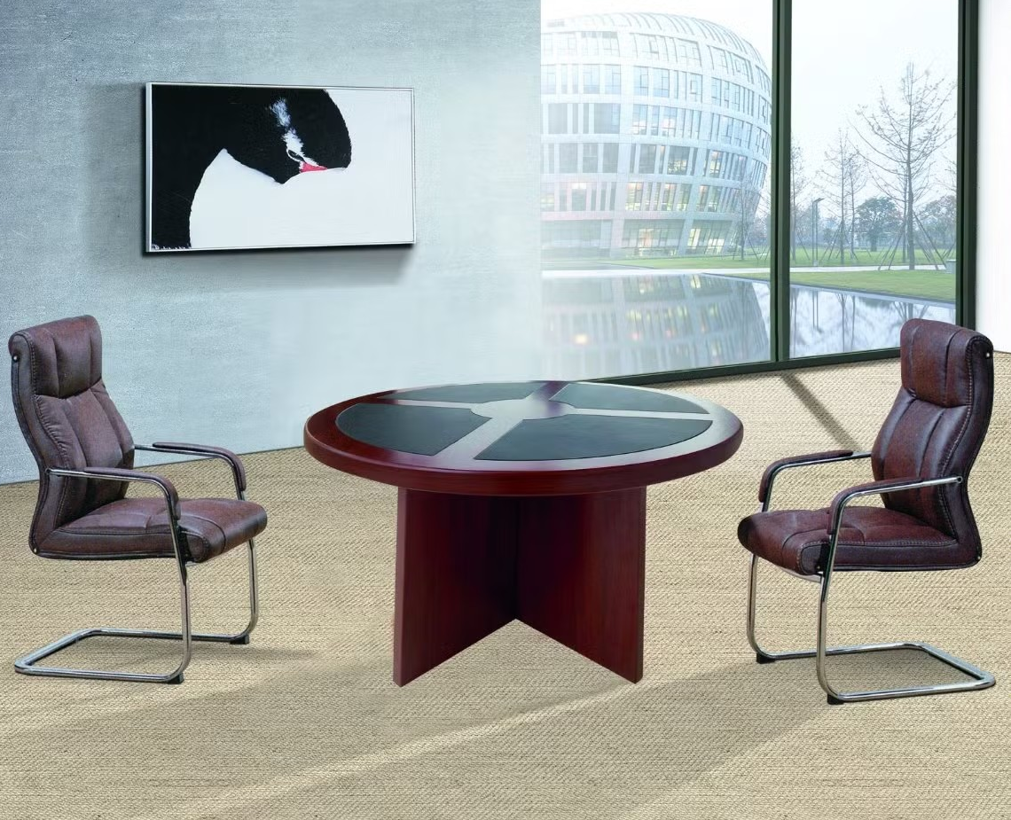 The table’s design focuses on both style and practicality. The round shape maximizes usable surface area while minimizing corners, making it easier for participants to share documents, laptops, or presentation materials. Its ergonomic layout supports comfortable seating for all attendees, fostering productive discussions and effective meetings. The table is compatible with various office chairs and seating arrangements, allowing flexibility for small or large groups.