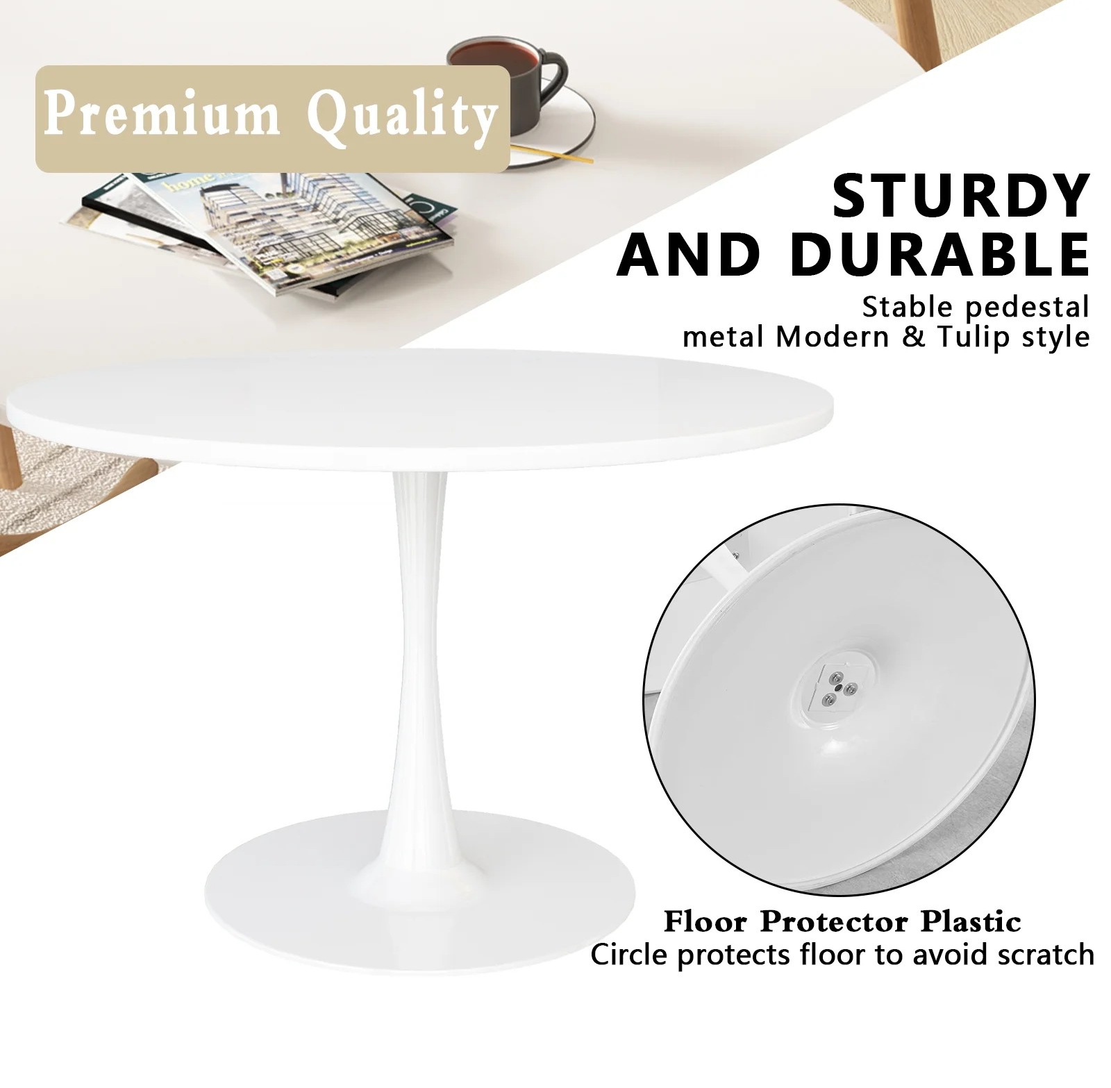 The table is built to last. Its strong construction ensures stability, supporting meals, casual gatherings, and entertaining guests without wobbling. You can rely on its durability for everyday use. Its round shape also makes movement around the table easy and safe, reducing sharp edges in busy dining areas.