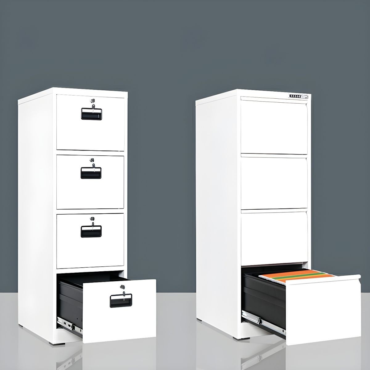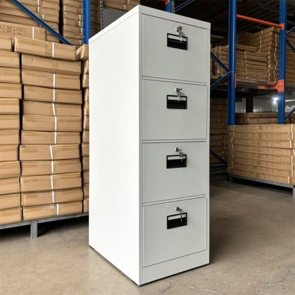 Upgrade your workspace with this Steel Metallic 4 Drawer File Cabinet, built for both style and performance. Made from high-quality, heavy-gauge steel, it delivers excellent strength and durability. This makes it ideal for offices, home workspaces, or commercial environments. The metallic finish adds a modern look while resisting scratches, stains, and daily wear. As a result, your cabinet maintains a clean and professional appearance over time.