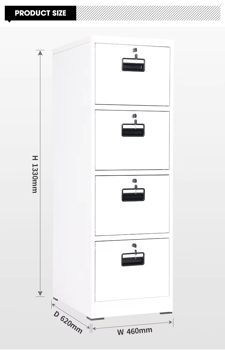 Keep your workspace organized and professional with this sleek Steel Metallic 4-Drawer File Cabinet, designed for durability, security, and everyday efficiency. Crafted from high-quality steel with a smooth metallic finish, this cabinet offers a modern look that complements any office or home setup while resisting wear and corrosion. Its four spacious drawers glide effortlessly on precision runners, providing ample storage for documents, files, and office essentials, while the secure locking system ensures your confidential paperwork stays protected. Built for long-term use, this cabinet combines functionality with a clean, minimalist design—perfect for maximizing productivity and maintaining a clutter-free environment.