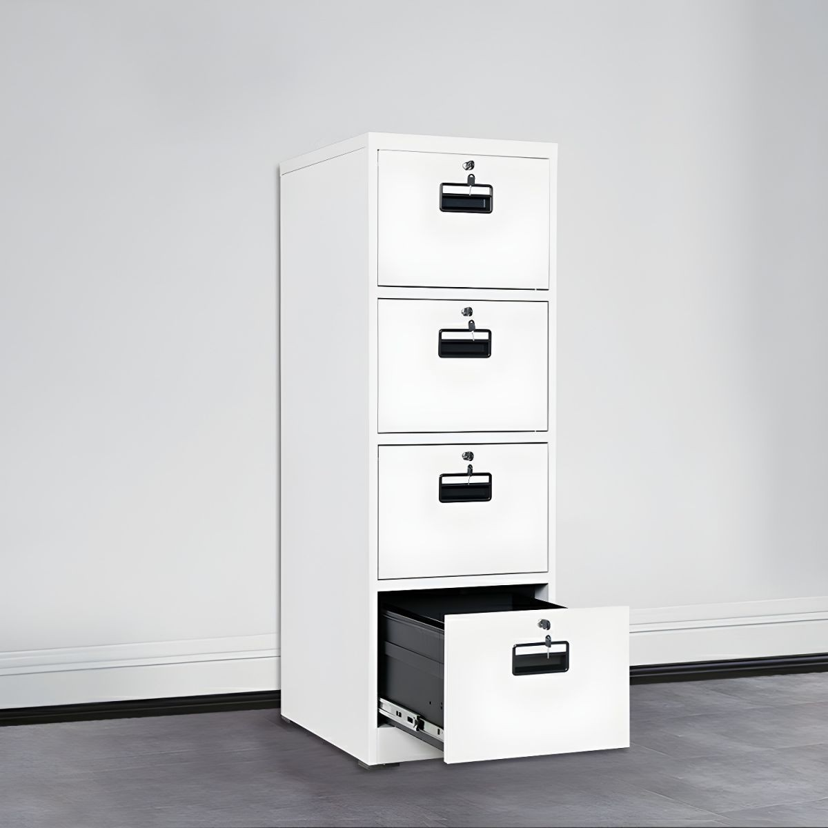 Security is a key feature of this cabinet. It includes a central locking system that secures all drawers at once. This keeps sensitive documents safe and confidential. In addition, the anti-tilt mechanism allows only one drawer to open at a time. This reduces the risk of tipping and ensures stability, even when the cabinet is fully loaded.