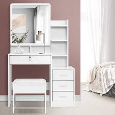 The Bedroom Vanity Dressing Table is a stylish and functional piece designed to enhance your personal space with elegance and convenience. Perfect for bedrooms, dressing rooms, or personal studios, this vanity table combines ample storage with a sleek design, making it easy to organize cosmetics, jewelry, and daily essentials.Crafted from high-quality materials, the dressing table features a smooth tabletop and multiple drawers for neat storage. Its design often includes a mirror, providing a practical and aesthetically pleasing setup for daily grooming routines. Compact yet spacious, it fits seamlessly into bedrooms of any size, adding a touch of sophistication and modern style.