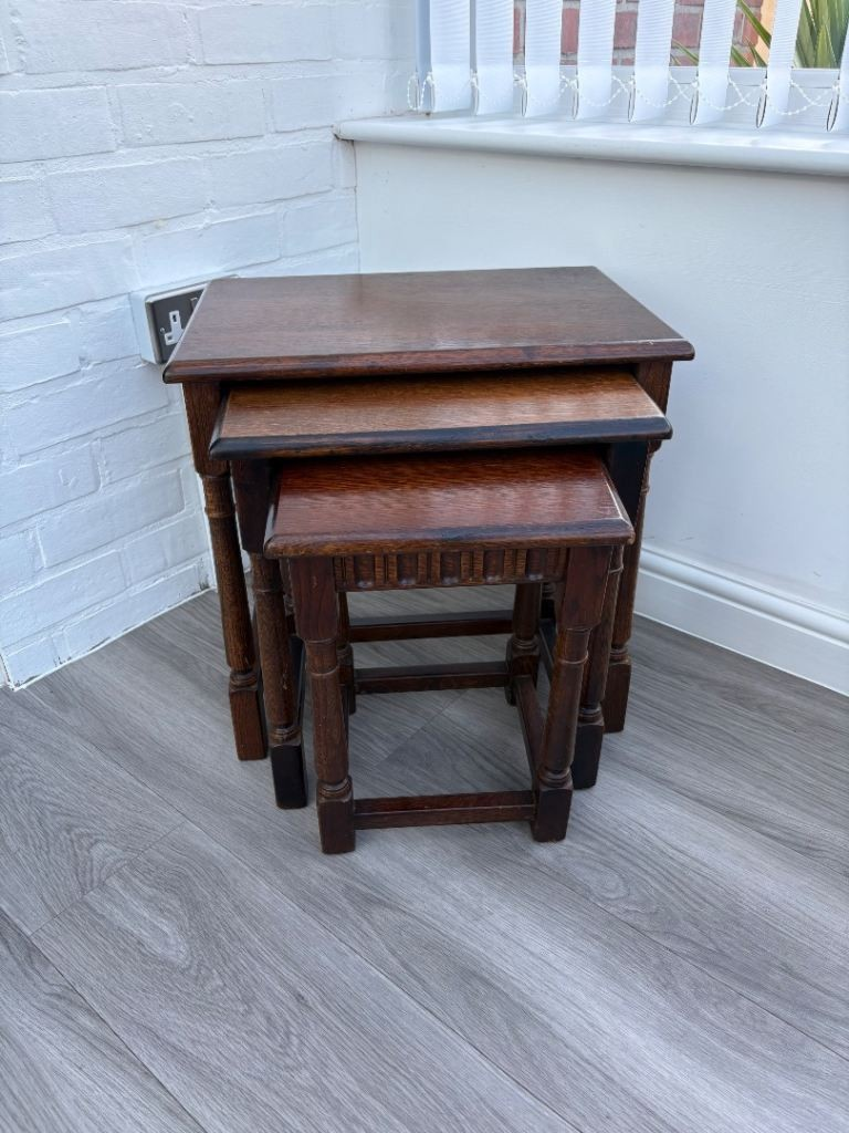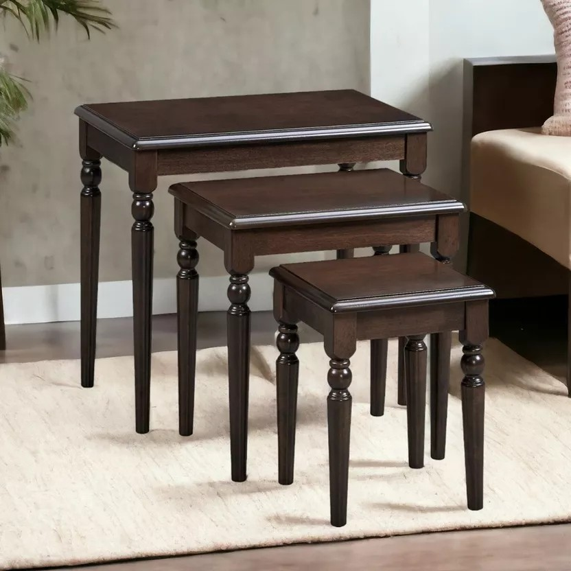Crafted from high-quality wood with a durable finish, each table in the set is built to withstand everyday use while maintaining its natural charm. The smooth surfaces are easy to clean and resistant to scratches, ensuring long-lasting beauty. The sturdy construction provides excellent stability, making the tables ideal for holding beverages, books, decorative items, and more.